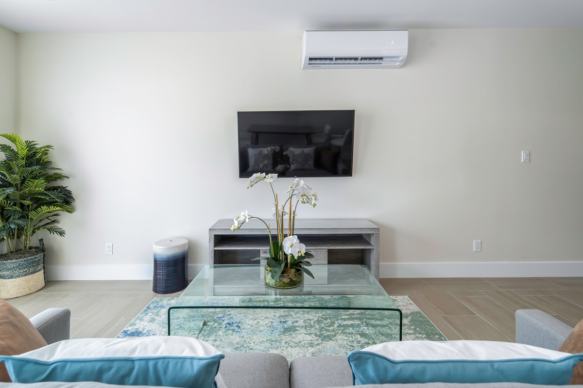 - Ground floor location with A/C living room