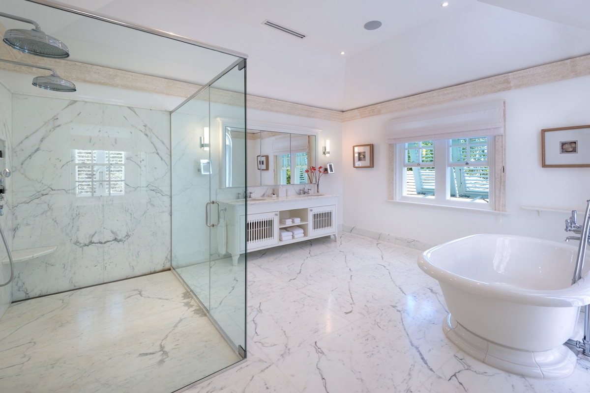 Situated overlooking the stunning crystal clear waters of Paynes Bay, Kiko opens its doors to guests looking for a Barbados family holiday that caters to larger and multi generational groups as well as discerning couples who like to entertain in style. The two master bedrooms are on the third floor and feature private balconies, kings sized beds, dressing rooms and marbled en suite bathrooms each with a private tub and double rain showers. There is a shared living area with large flat screen television, spacious breezy balcony and small kitchenette on this floor.