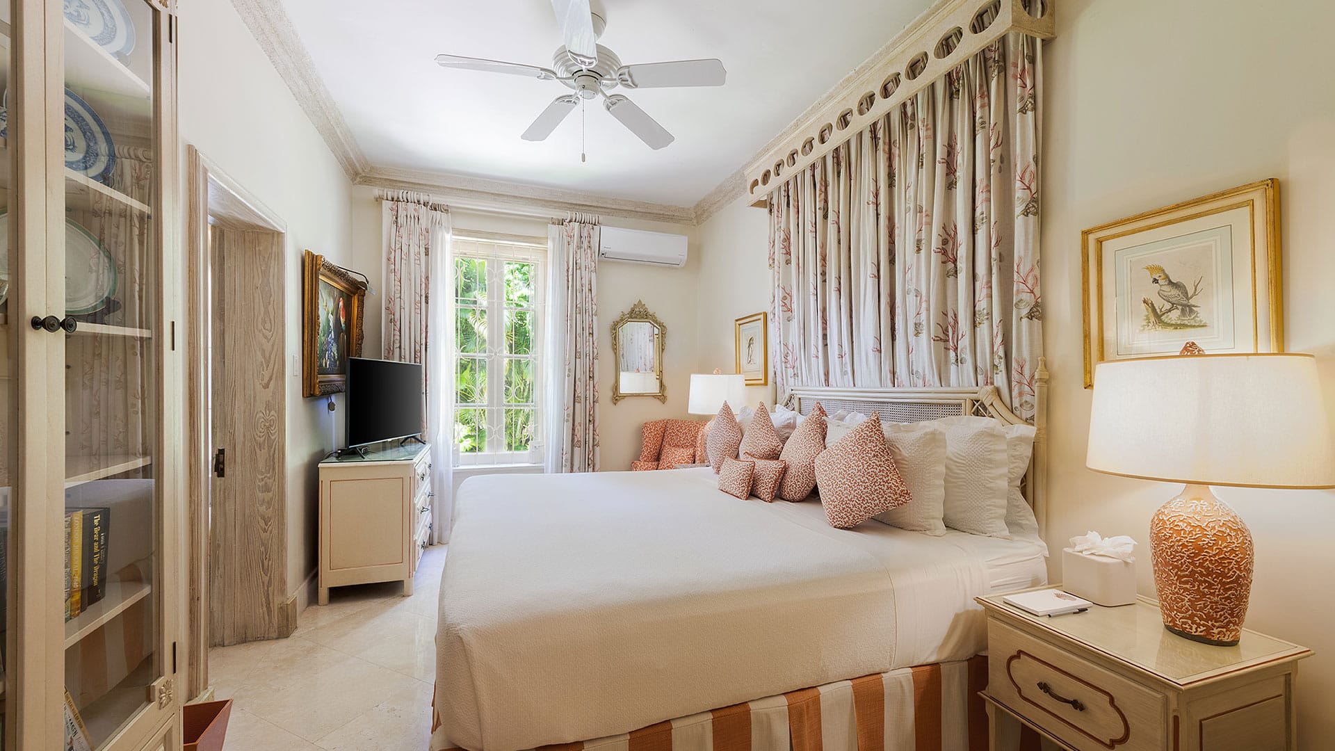 Three spacious ensuite bedrooms are superbly decorated, offering ample space for relaxation and a total recharge of the senses. The master suite boasts a stunning canopied bed, and a trellised sitting area overlooking the pool and gardens provides a serene sanctuary.