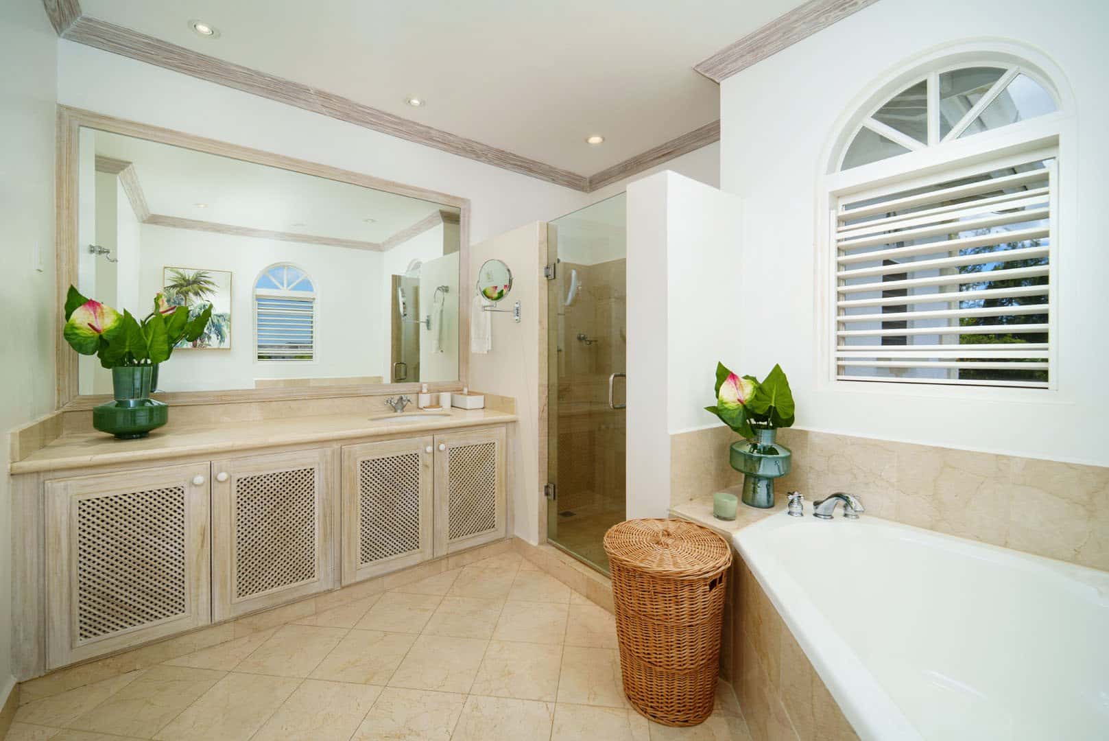 With three spacious bedrooms, each designed for comfort and relaxation, you'll feel right at home. The upper level offers two bedrooms, each with a private balcony, perfect for enjoying great views of the Caribbean Sea. The master bedroom features a king bed and an en-suite with both a bath and shower, while the second bedroom is equipped with twin beds and an en-suite bathroom. On the lower level, the third bedroom includes a queen bed and en-suite. As an additional option, families with young children can easily accommodate extra guests with a bunk-bed option. All sleeping areas have air conditioning.